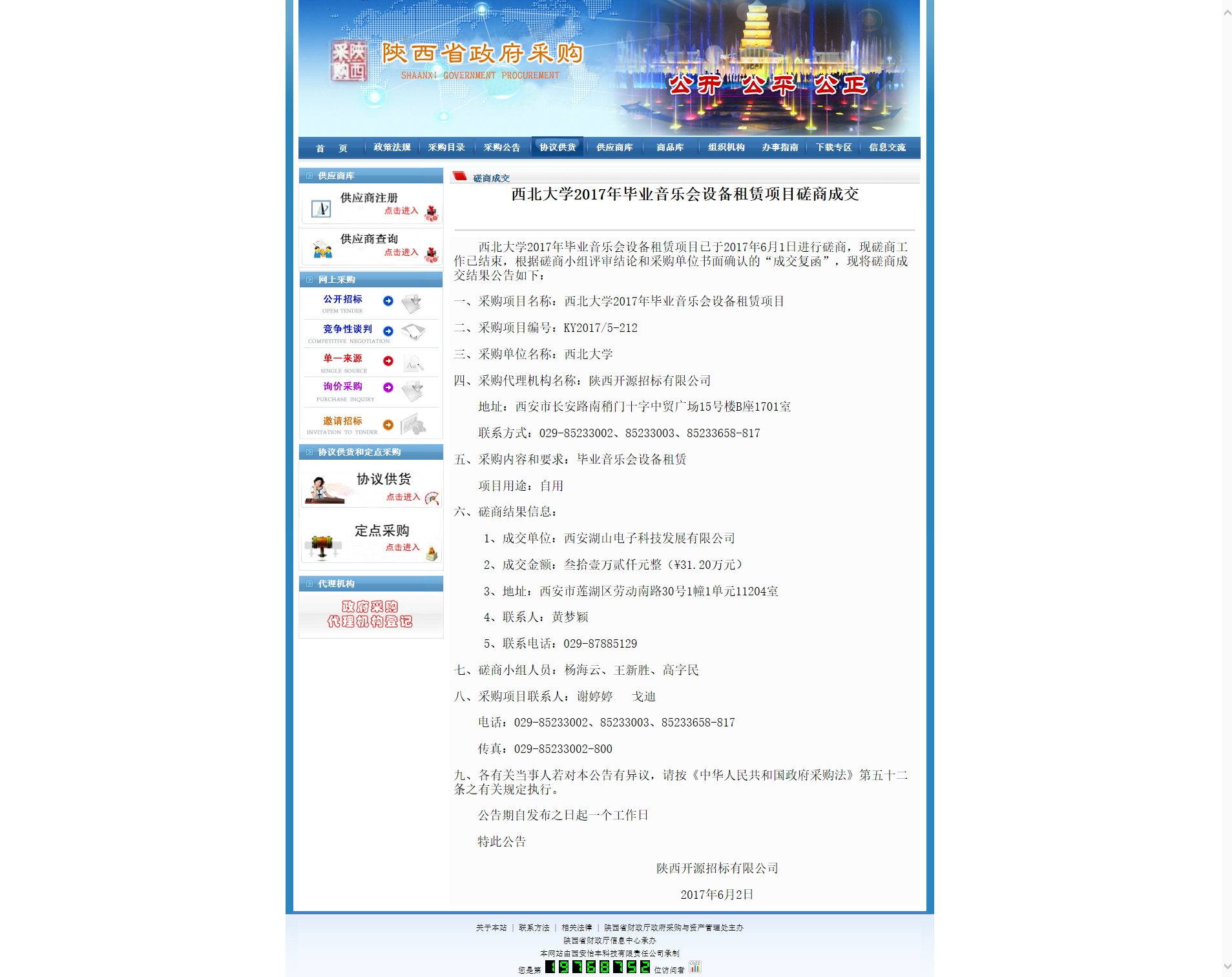古天乐代言太阳集团城网址2017年毕业音乐会设备租赁项目磋商成交 作者: 编辑: 时间:2017-06-05 09:53 http://www.ccgp-shaanxi.gov.cn/zb_view.jsp?NewsID=ZH170602144541US131018031658&ClassBID=CS002