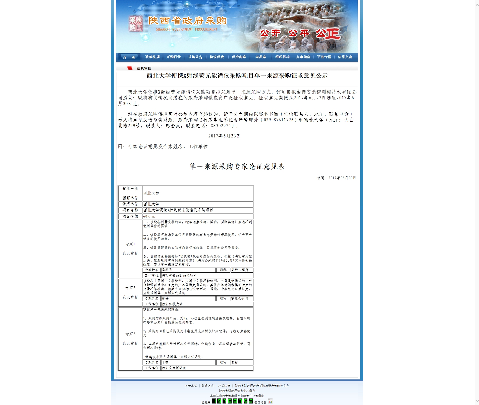 古天乐代言太阳集团城网址便携X射线荧光能谱仪采购项目单一来源采购征求意见公示 作者: 编辑: 时间:2017-06-28 16:09 http://www.ccgp-shaanxi.gov.cn/publicityTool.jsp?NewsID=GS170623162954US090115094155&ClassBID=T0001