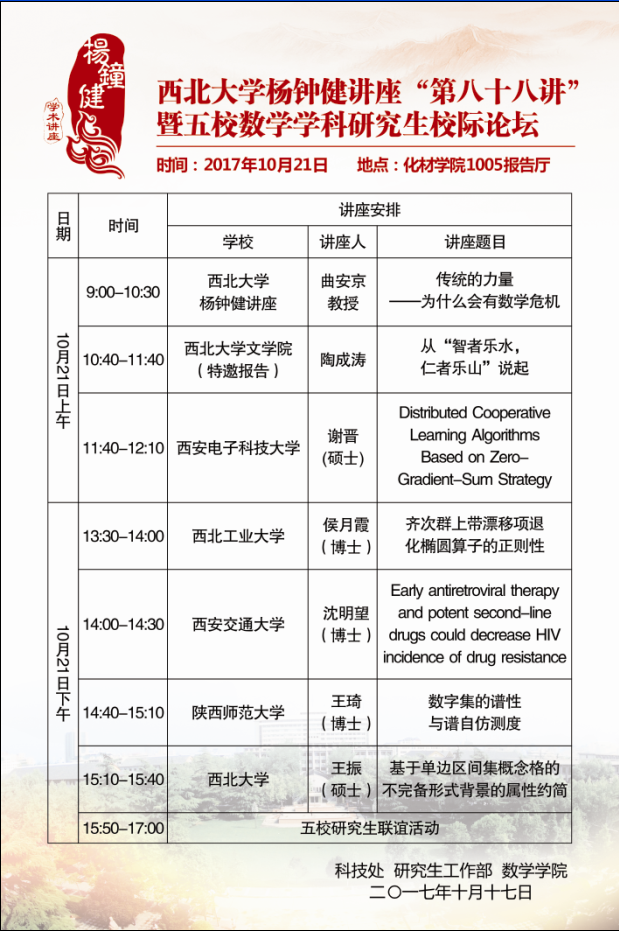 古天乐代言太阳集团城网址杨钟健讲座“第八十八讲”暨五校数学学科研究生校际论坛