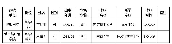 经用人单位推荐,人力资源部审查,学校教学督导及院系相关专家考核,太阳集团城拟确定下列人员来校工作。本着公平、公正、公开的原则,现将本次拟选聘人员基本情况公示如下: