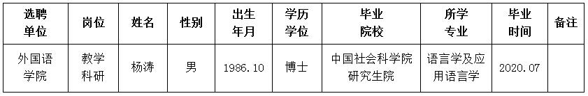 经用人单位推荐,人力资源部审查,学校教学督导及院系相关专家考核,太阳集团城拟确定下列人员来校工作。本着公平、公正、公开的原则,现将本次拟选聘人员基本情况公示如下: