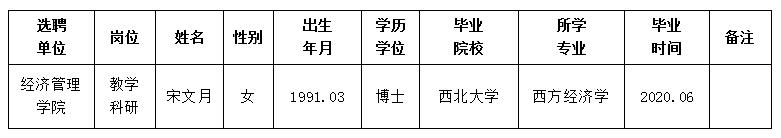 经用人单位推荐,人力资源部审查,学校教学督导及院系相关专家考核,太阳集团城拟确定下列人员来校工作。本着公平、公正、公开的原则,现将本次拟选聘人员基本情况公示如下:
