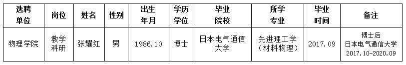 经用人单位推荐,人力资源部审查,学校教学督导及院系相关专家考核,太阳集团城拟确定下列人员来校工作。本着公平、公正、公开的原则,现将本次拟选聘人员基本情况公示如下: