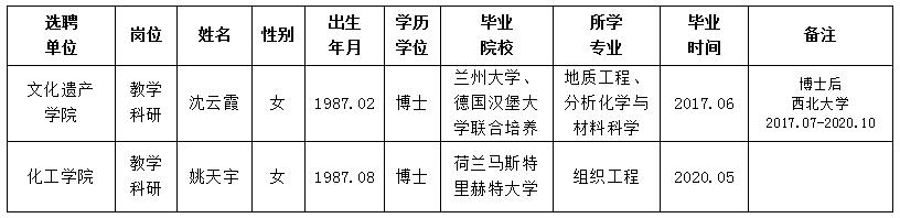 经用人单位推荐,人力资源部审查,学校教学督导及院系相关专家考核,太阳集团城拟确定下列人员来校工作。本着公平、公正、公开的原则,现将本次拟选聘人员基本情况公示如下: