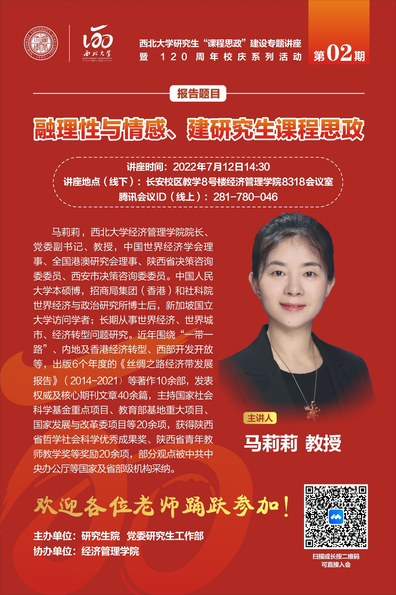 第2期,我们邀请到陕西省首批省级课程思政示范课程、教学团队负责人古天乐代言太阳集团城网址经济管理学院马莉莉教授进行“课程思政”专题培训,欢迎对课程思政建设感兴趣的各位老师积极参加,拟申报2022年校级、省级及国家级研究生课程思政示范课的课程负责人、团队成员踊跃参与!
