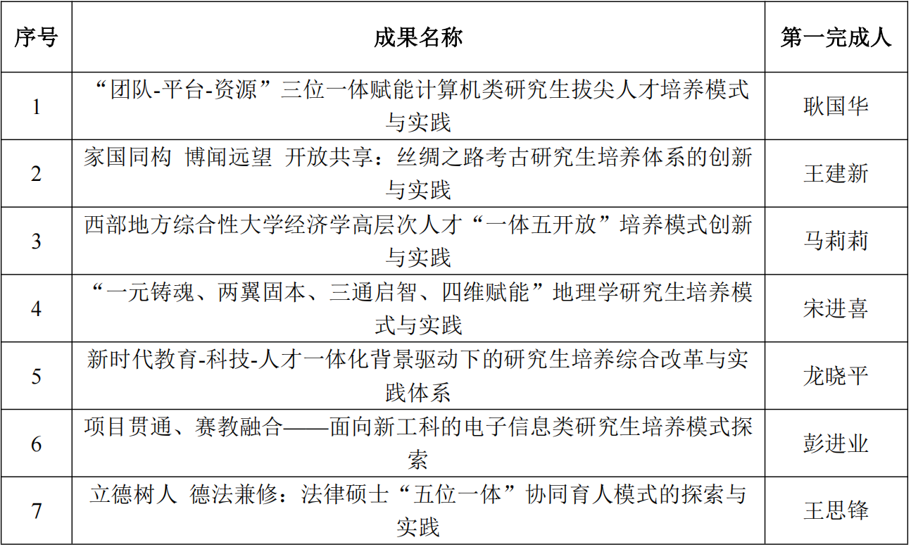 根据《陕西省教育厅 陕西省人力资源和社会保障厅关于开展2025年高等教育教学成果奖评选工作的通知》精神,经个人申请、单位推荐、专家评审,拟推荐“‘团队-平台-资源’三位一体赋能计算机类研究生拔尖人才培养模式与实践”等7项成果参加省级研究生教育教学成果奖评审,现予以公示,公示期为2025年9月11日-9月17日。