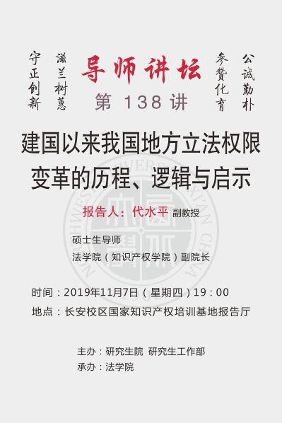 导师讲坛第138讲:建国以来我国地方立法权限变革的历程、逻辑与启示