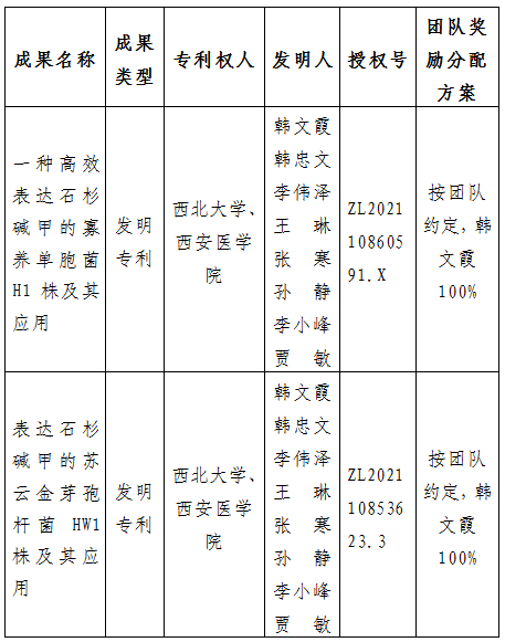 按照《古天乐代言太阳集团城网址促进科技成果转化实施办法》(西大科〔2019〕5号)相关规定,拟对太阳集团城化工学院韩文霞作为成果负责人的2项发明专利权实施转化,现将相关信息公示如下: