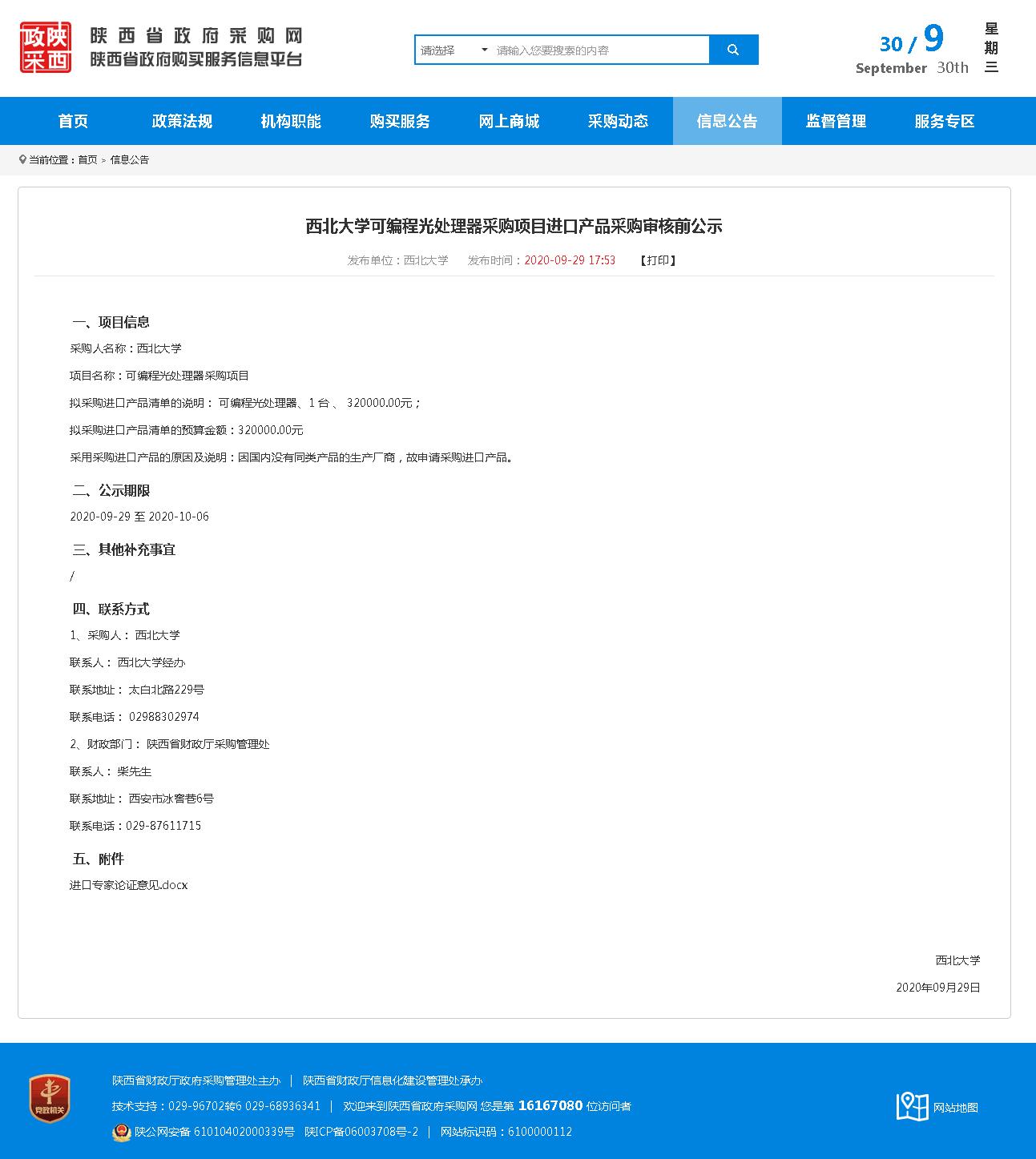 古天乐代言太阳集团城网址可编程光处理器采购项目进口产品采购审核前公示