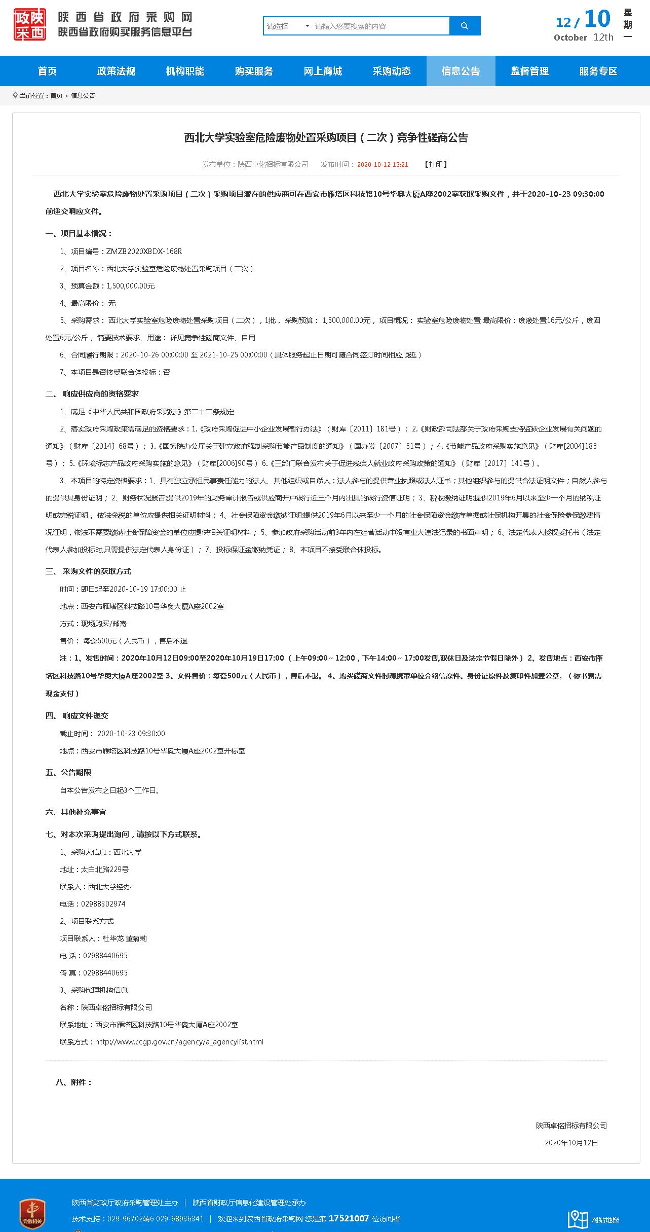古天乐代言太阳集团城网址实验室危险废物处置采购项目(二次)竞争性磋商公告