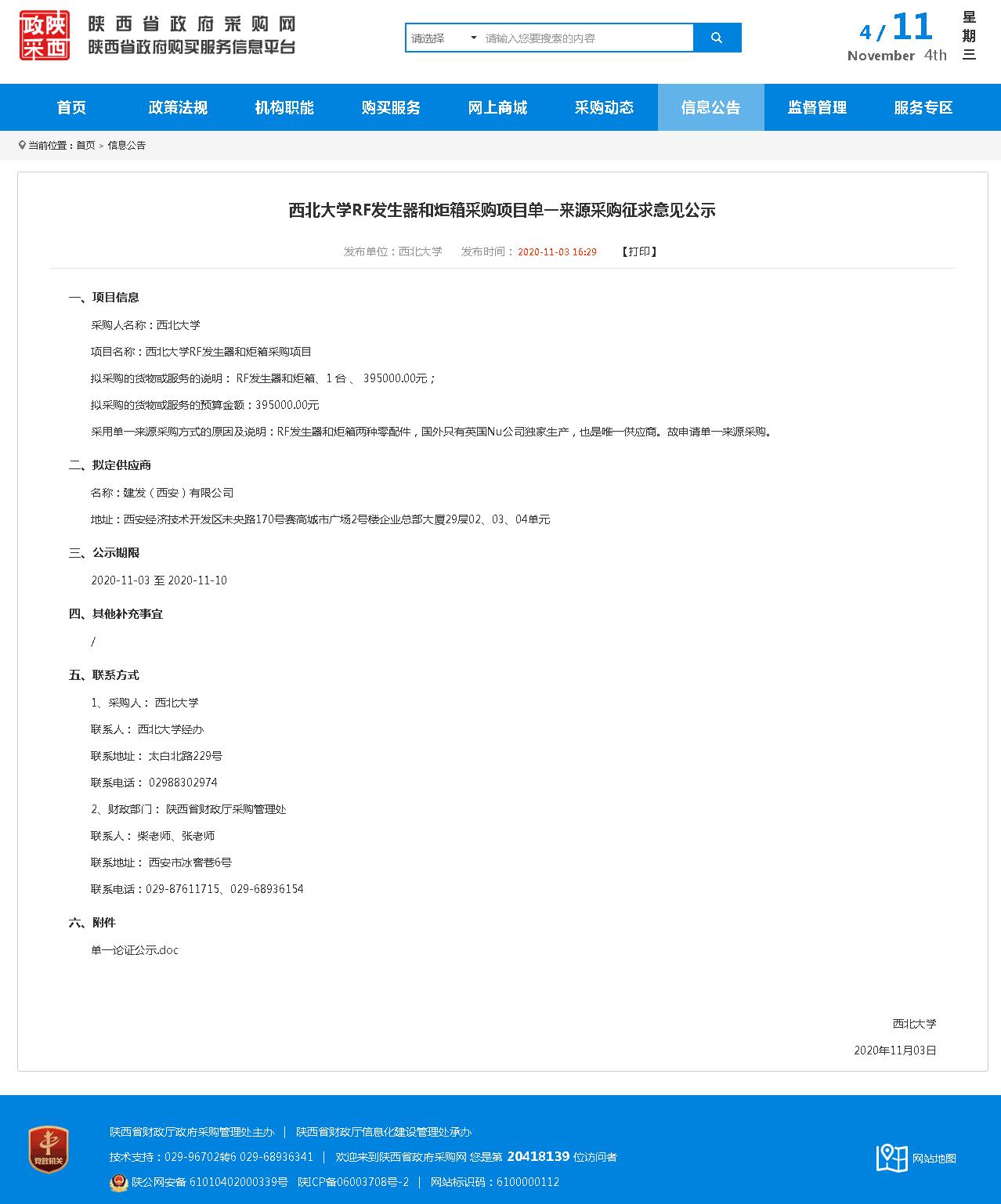 古天乐代言太阳集团城网址RF发生器和炬箱采购项目单一来源采购征求意见公示