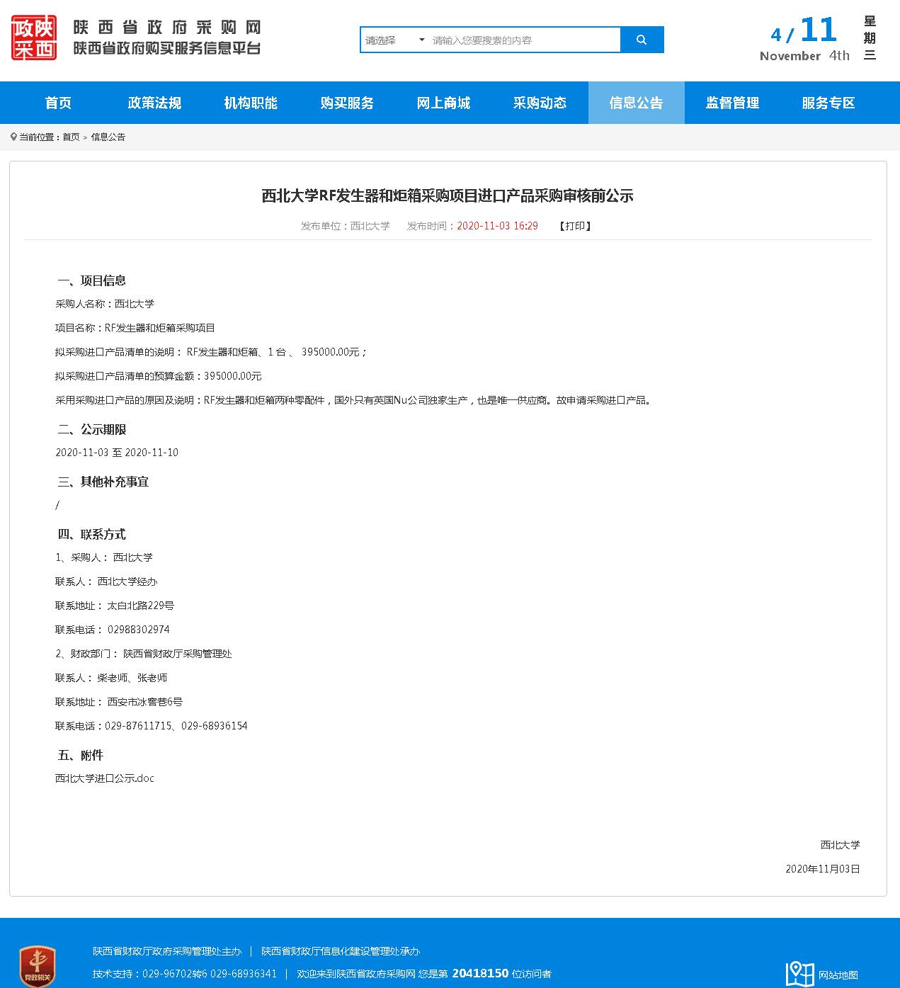 古天乐代言太阳集团城网址RF发生器和炬箱采购项目进口产品采购审核前公示