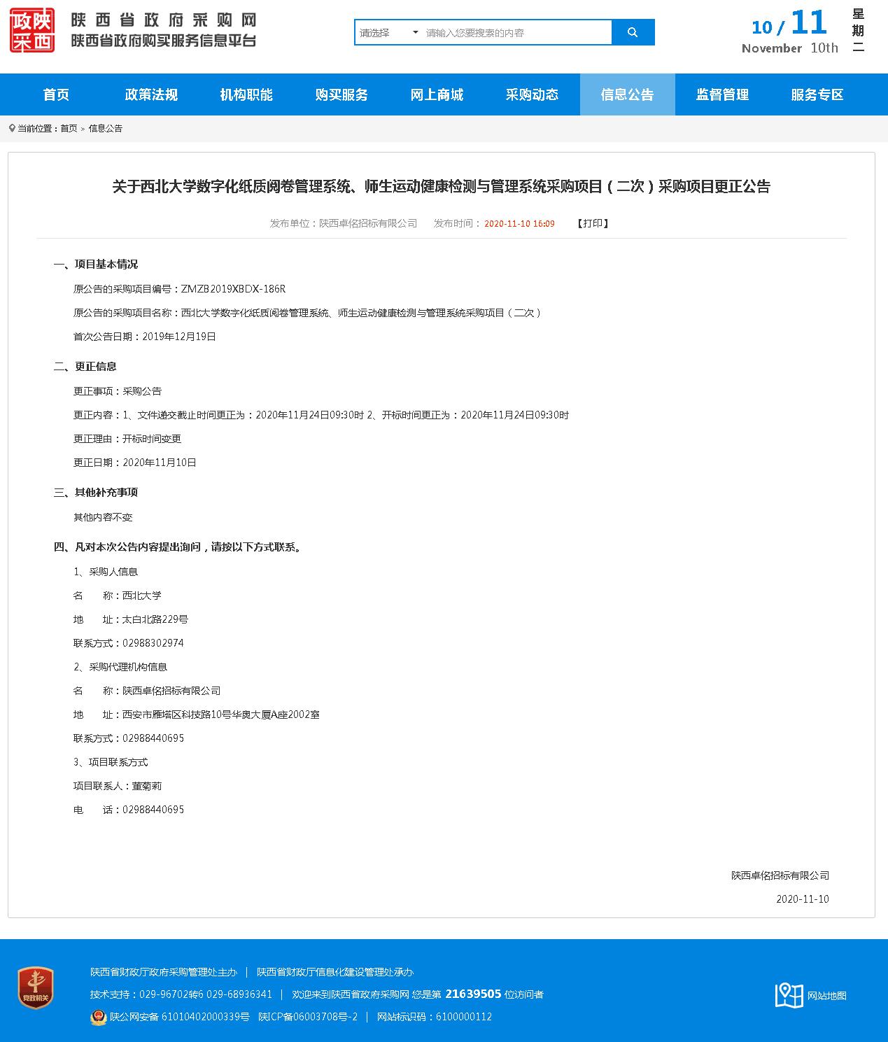 古天乐代言太阳集团城网址数字化纸质阅卷管理系统、师生运动健康检测与管理系统采购项目(二次)采购项目更正公告