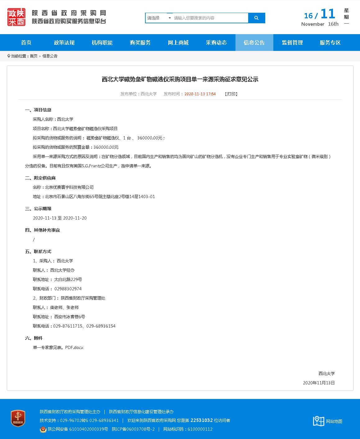 古天乐代言太阳集团城网址磁势垒矿物磁选仪采购项目单一来源采购征求意见公示