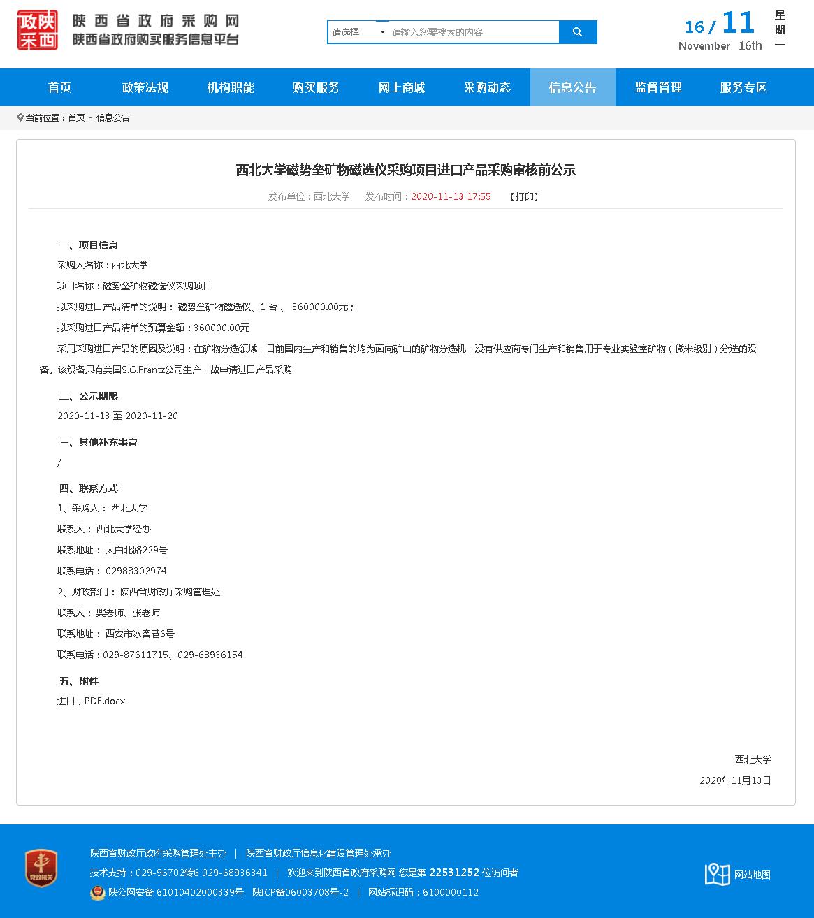 古天乐代言太阳集团城网址磁势垒矿物磁选仪采购项目进口产品采购审核前公示