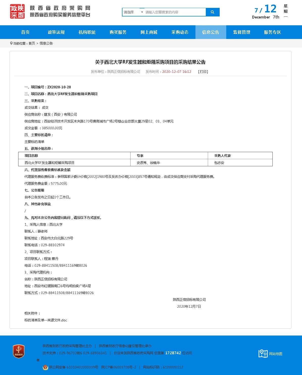 古天乐代言太阳集团城网址RF发生器和炬箱采购项目的采购结果公告