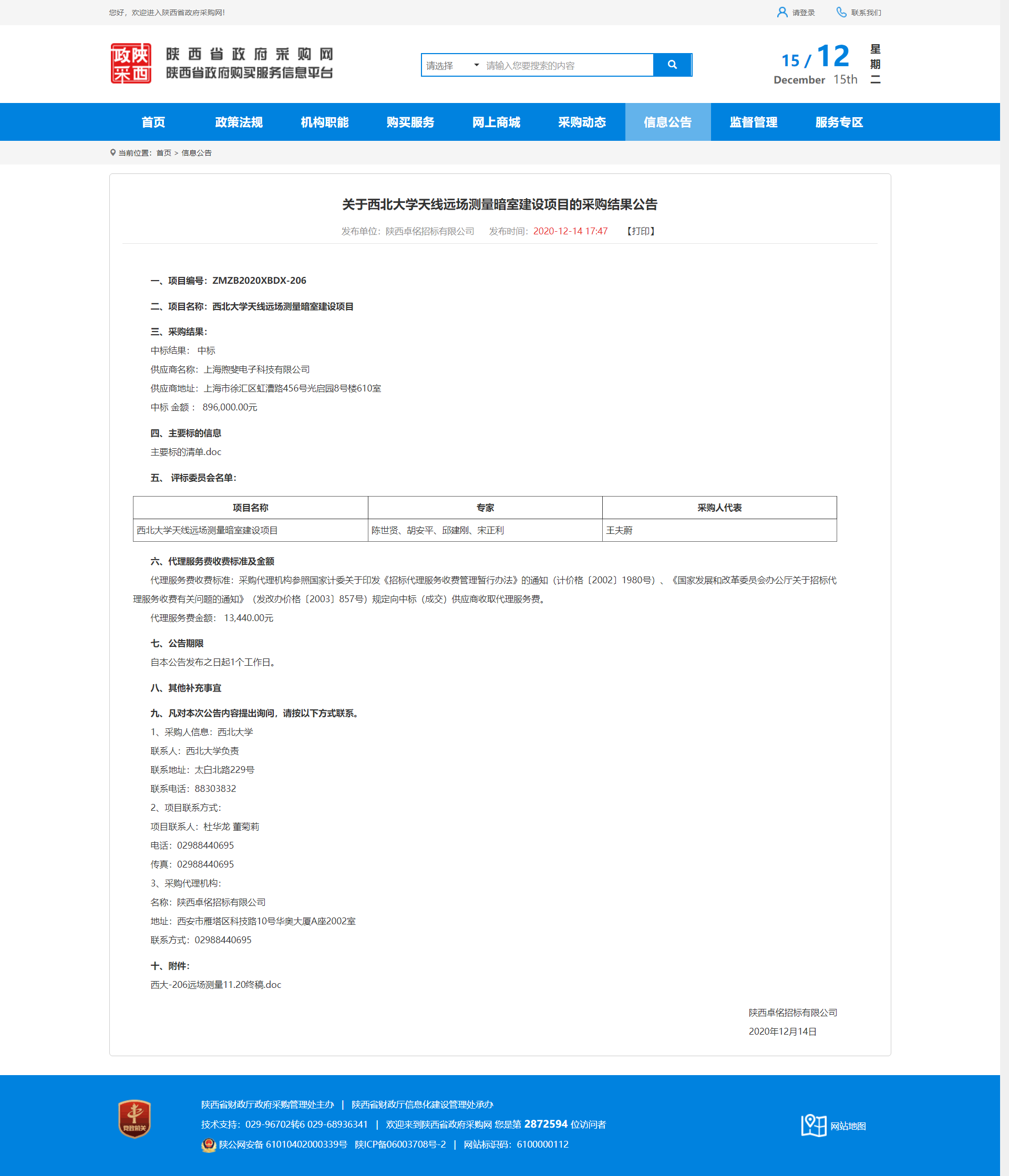 关于古天乐代言太阳集团城网址天线远场测量暗室建设项目的采购结果公告 作者: 编辑:薛利娟 时间:2020-12-15 原公告地址:http://www.ccgp-shaanxi.gov.cn/notice/noticeDetail.do?noticeguid=8a85be32765f9c9b017660a51c811cc2