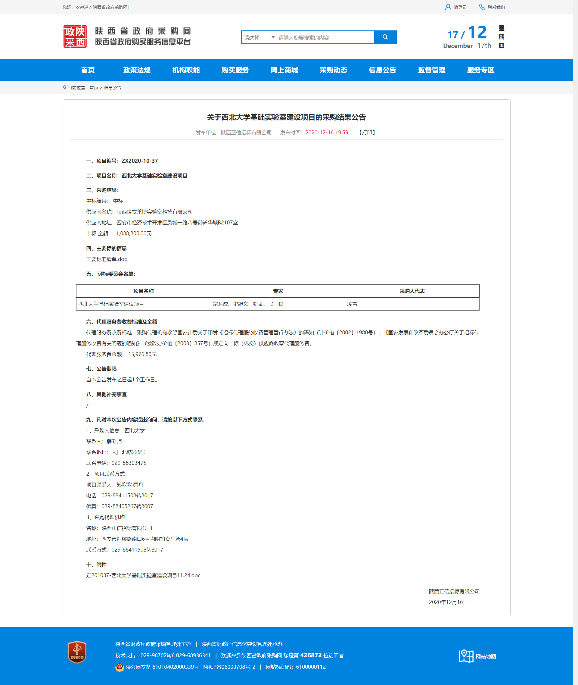 关于古天乐代言太阳集团城网址基础实验室建设项目的采购结果公告 作者: 编辑:薛利娟 时间:2020-12-17 原公告地址:http://www.ccgp-shaanxi.gov.cn/notice/noticeDetail.do?noticeguid=8a85be33765f9dd001766b69b5de2728