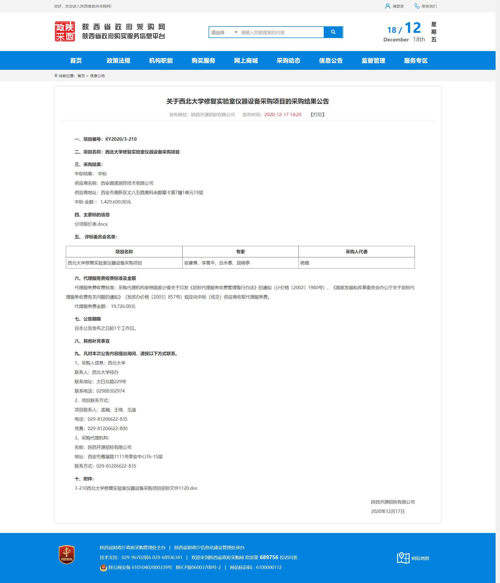 关于古天乐代言太阳集团城网址修复实验室仪器设备采购项目的采购结果公告 作者: 编辑:薛利娟 时间:2020-12-18 原公告地址:http://www.ccgp-shaanxi.gov.cn/notice/noticeDetail.do?noticeguid=8a85be34765f9eac01766f3cbcd749f6
