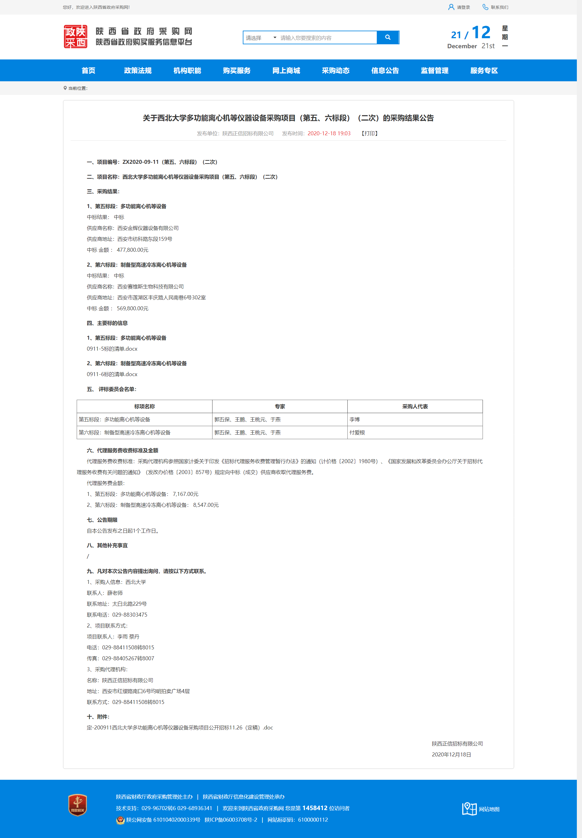 关于古天乐代言太阳集团城网址多功能离心机等仪器设备采购项目(第五、六标段)(二次)的采购结果公告 作者: 编辑:薛利娟 时间:2020-12-21 原 原公告地址:http://www.ccgp-shaanxi.gov.cn/notice/noticeDetail.do?noticeguid=8a85be34765f9eac01767583a6a72bec