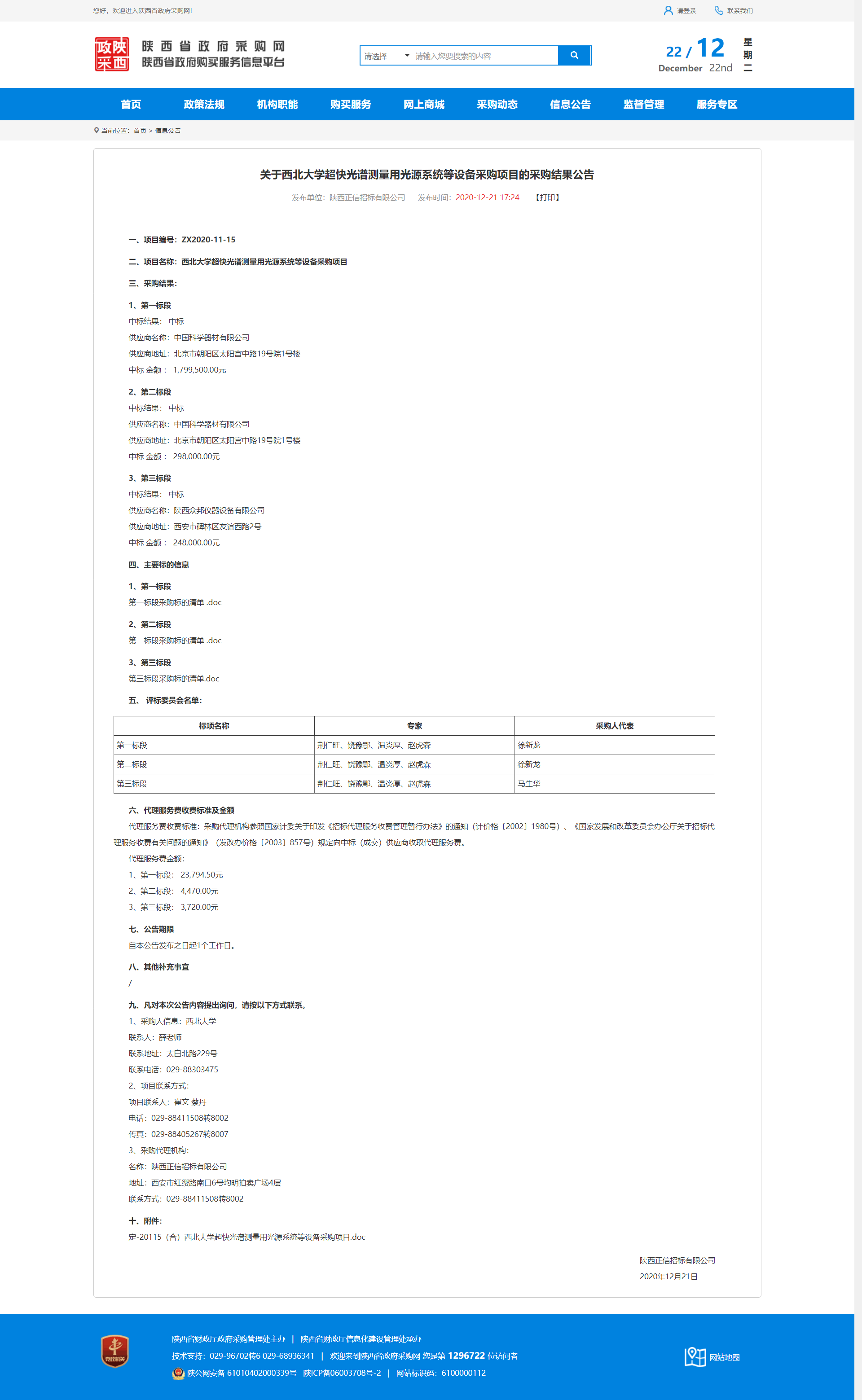 关于古天乐代言太阳集团城网址超快光谱测量用光源系统等设备采购项目的采购结果公告 作者: 编辑:薛利娟 时间:2020-12-22 原公告地址:http://www.ccgp-shaanxi.gov.cn/notice/noticeDetail.do?noticeguid=8a85be33765f9dd001768497df5d65ae