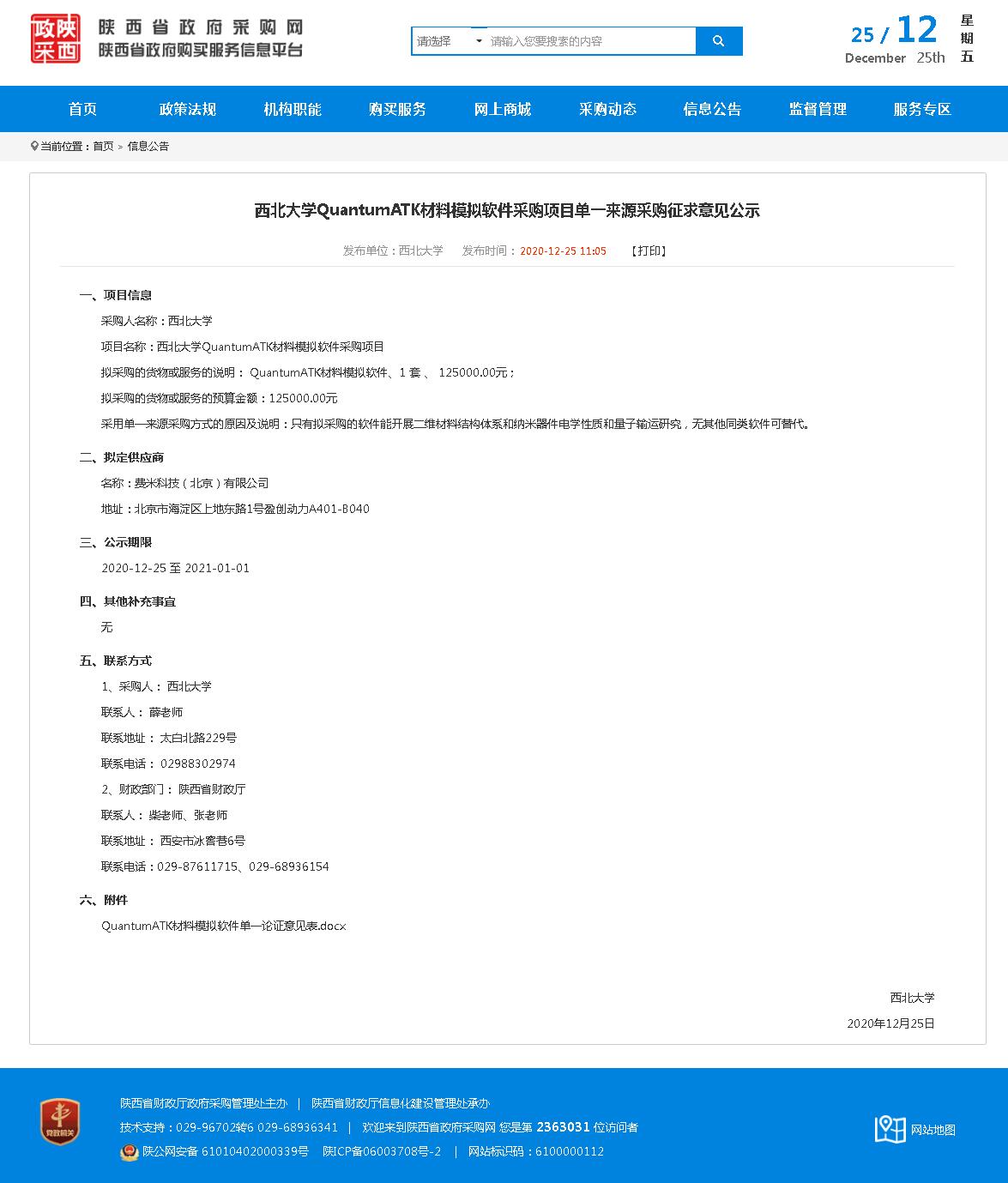 古天乐代言太阳集团城网址QuantumATK材料模拟软件采购项目单一来源采购征求意见公示