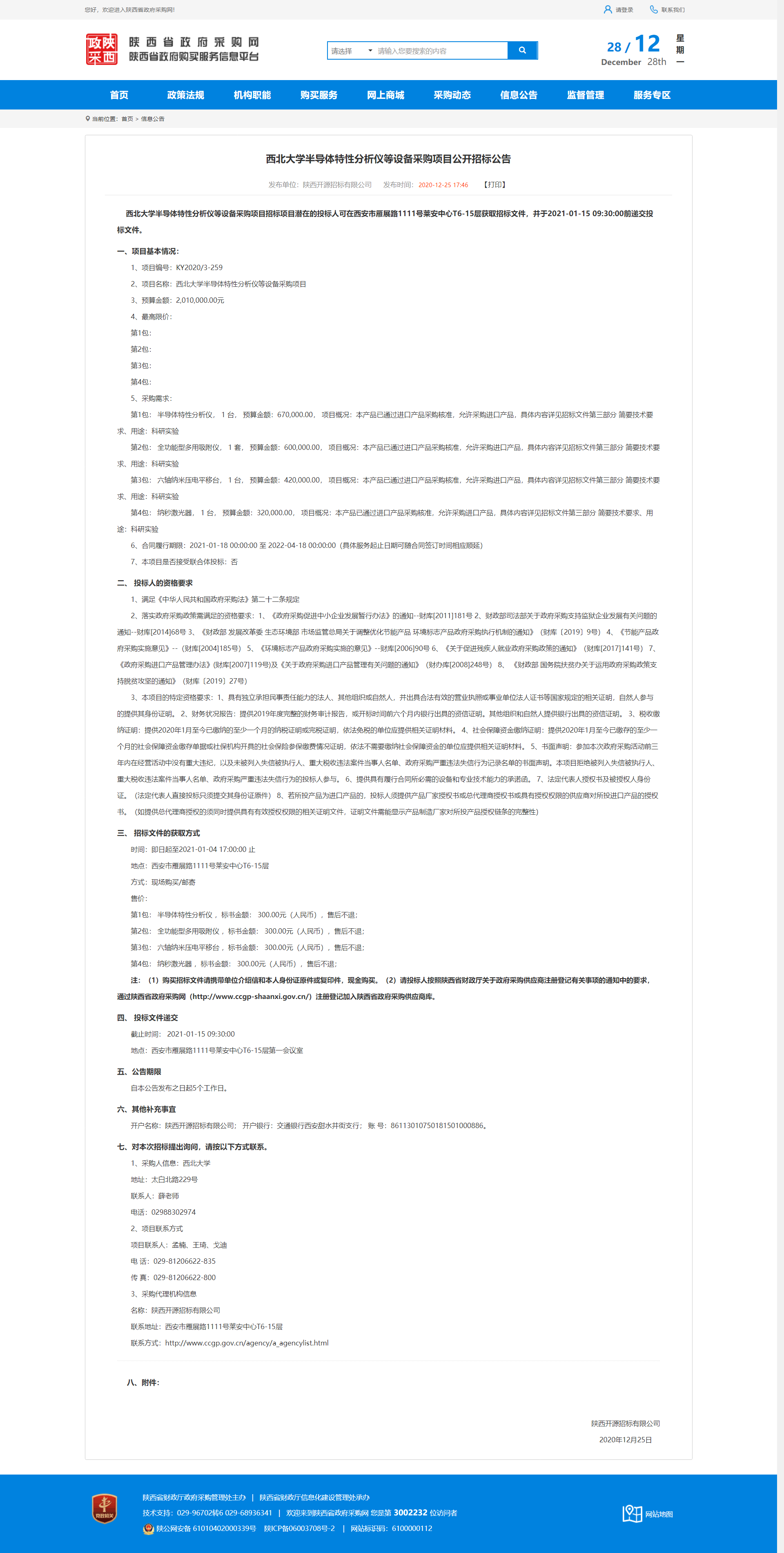 古天乐代言太阳集团城网址半导体特性分析仪等设备采购项目公开招标公告 作者: 编辑:薛利娟 时间:2020-12-28 原公告链接:http://www.ccgp-shaanxi.gov.cn/notice/noticeDetail.do?noticeguid=8a85be34769784fa0176994262042b99