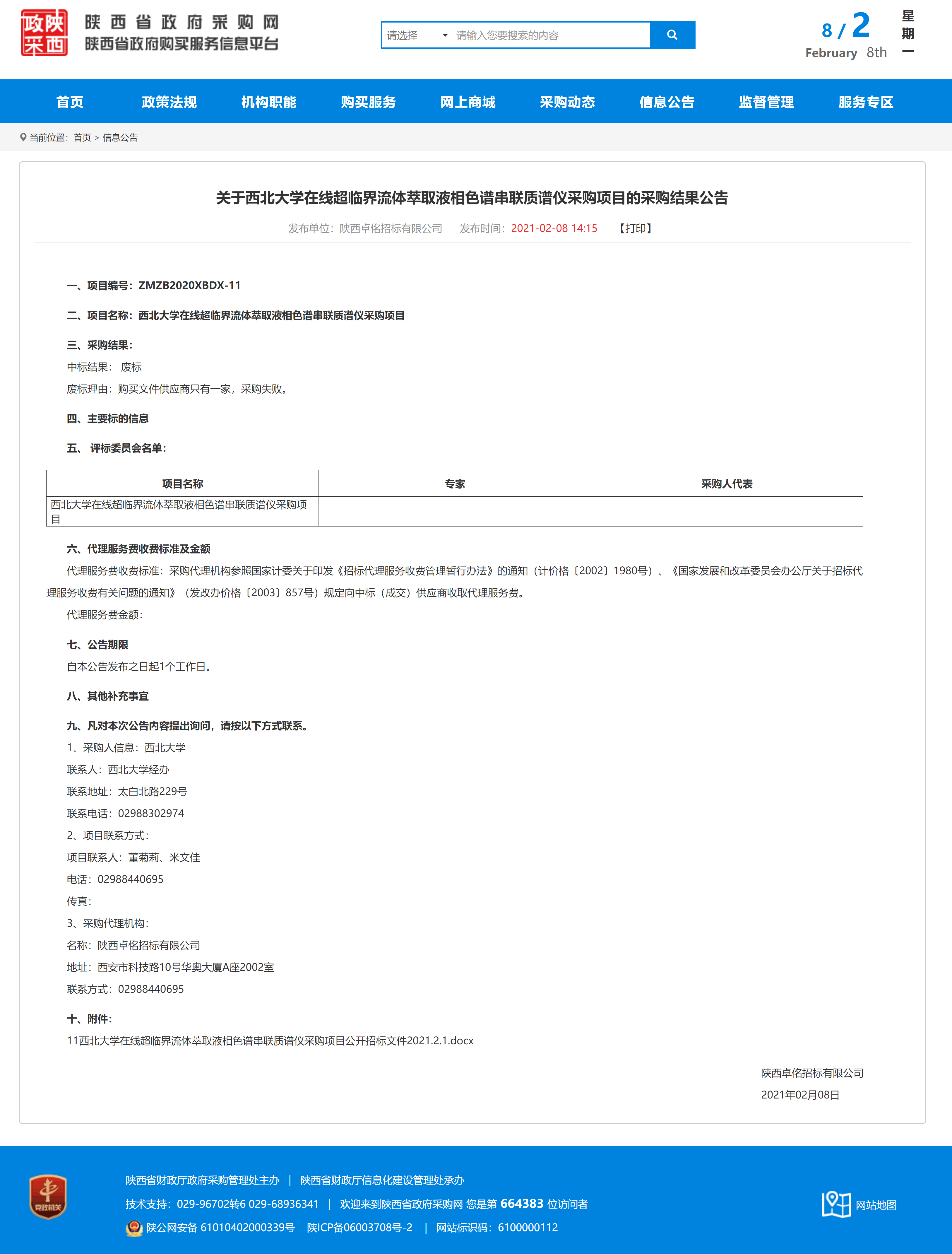 古天乐代言太阳集团城网址在线超临界流体萃取液相色谱串联质谱仪采购项目单一来源采购征求意见公示