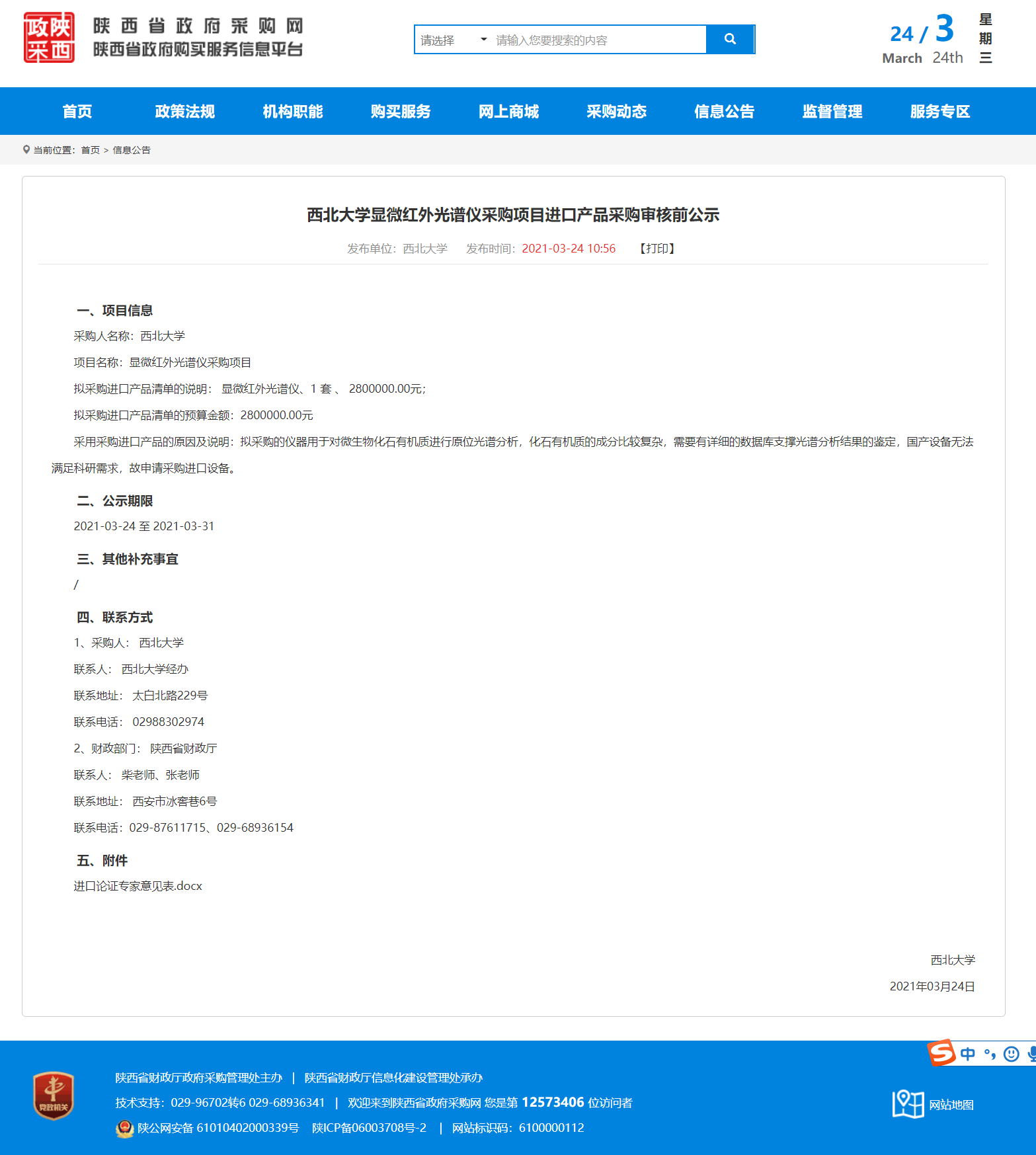 古天乐代言太阳集团城网址显微红外光谱仪采购项目进口产品采购审核前公示