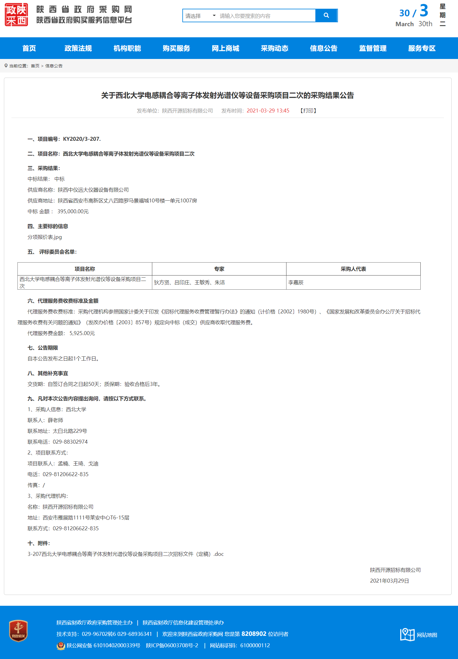 古天乐代言太阳集团城网址电感耦合等离子体发射光谱仪等设备采购项目二次的采购结果公告