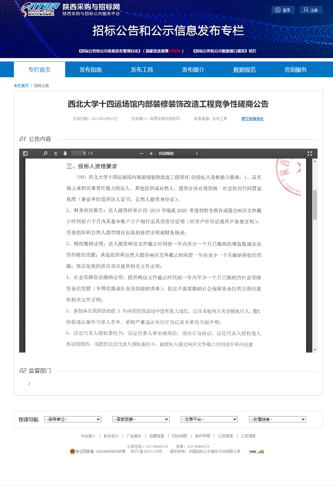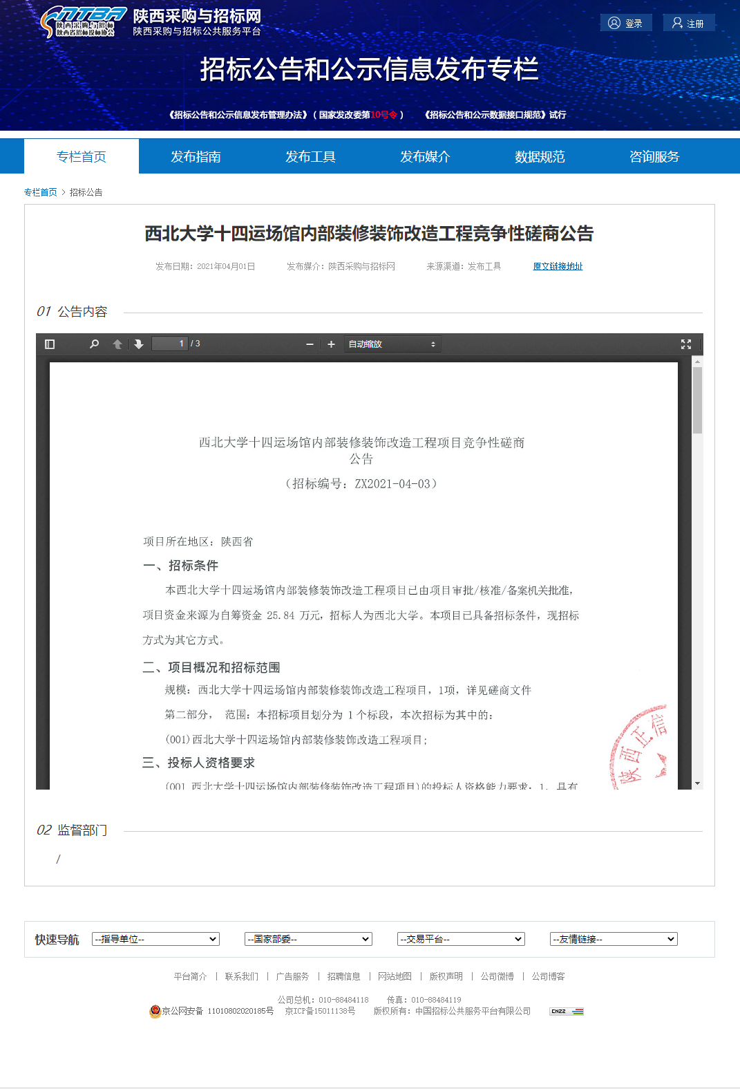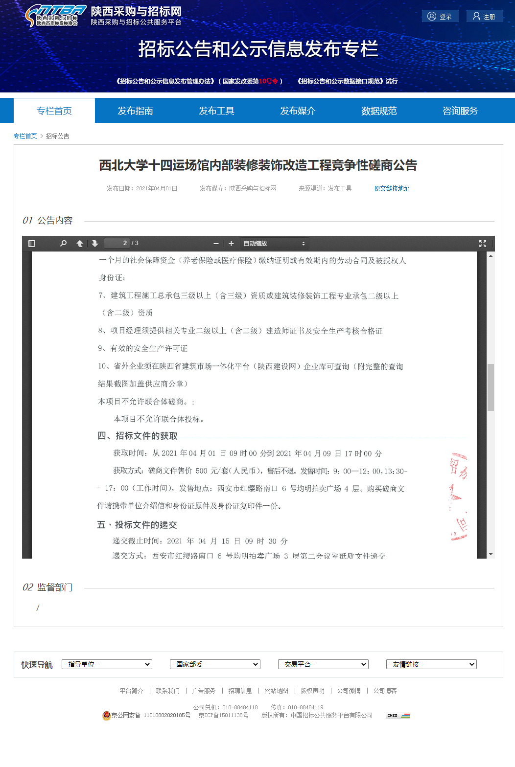 古天乐代言太阳集团城网址十四运场馆内部装修装饰改造工程竞争性磋商公告 作者: 编辑:薛利娟 时间:2021-04-02 原公告链接地址:http://bulletin.sntba.com/biddingBulletin/2021-04-01/283967.html
