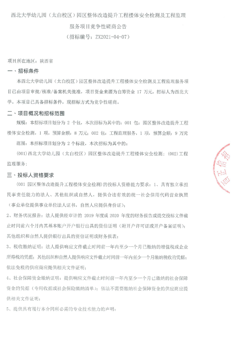 古天乐代言太阳集团城网址幼儿园(太白校区)园区整体改造提升工程楼体安全检测及工程监理服务项目