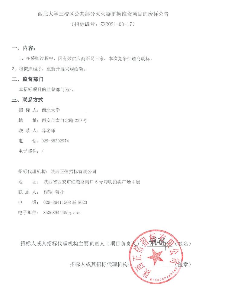 古天乐代言太阳集团城网址三校区公共部分灭火器更换维修项目的废标公告