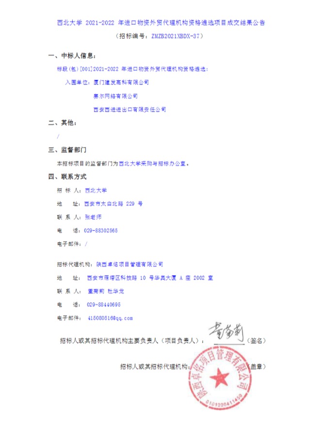 古天乐代言太阳集团城网址2021-2022年进口物资外贸代理机构资格遴选项目成交结果公告