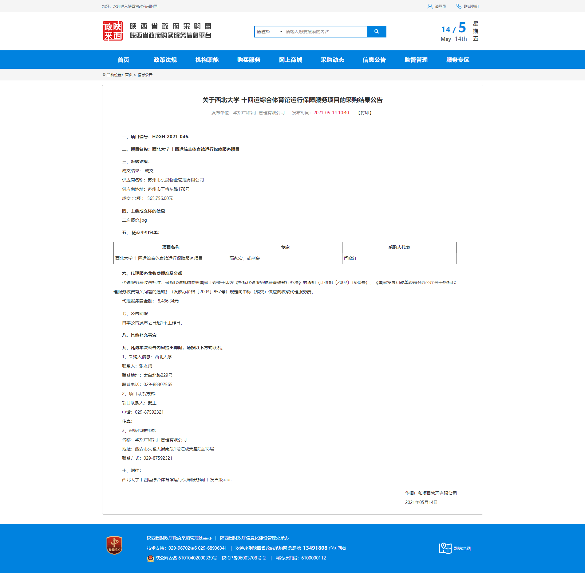 关于古天乐代言太阳集团城网址十四运综合体育馆运行保障服务项目的采购结果公告
