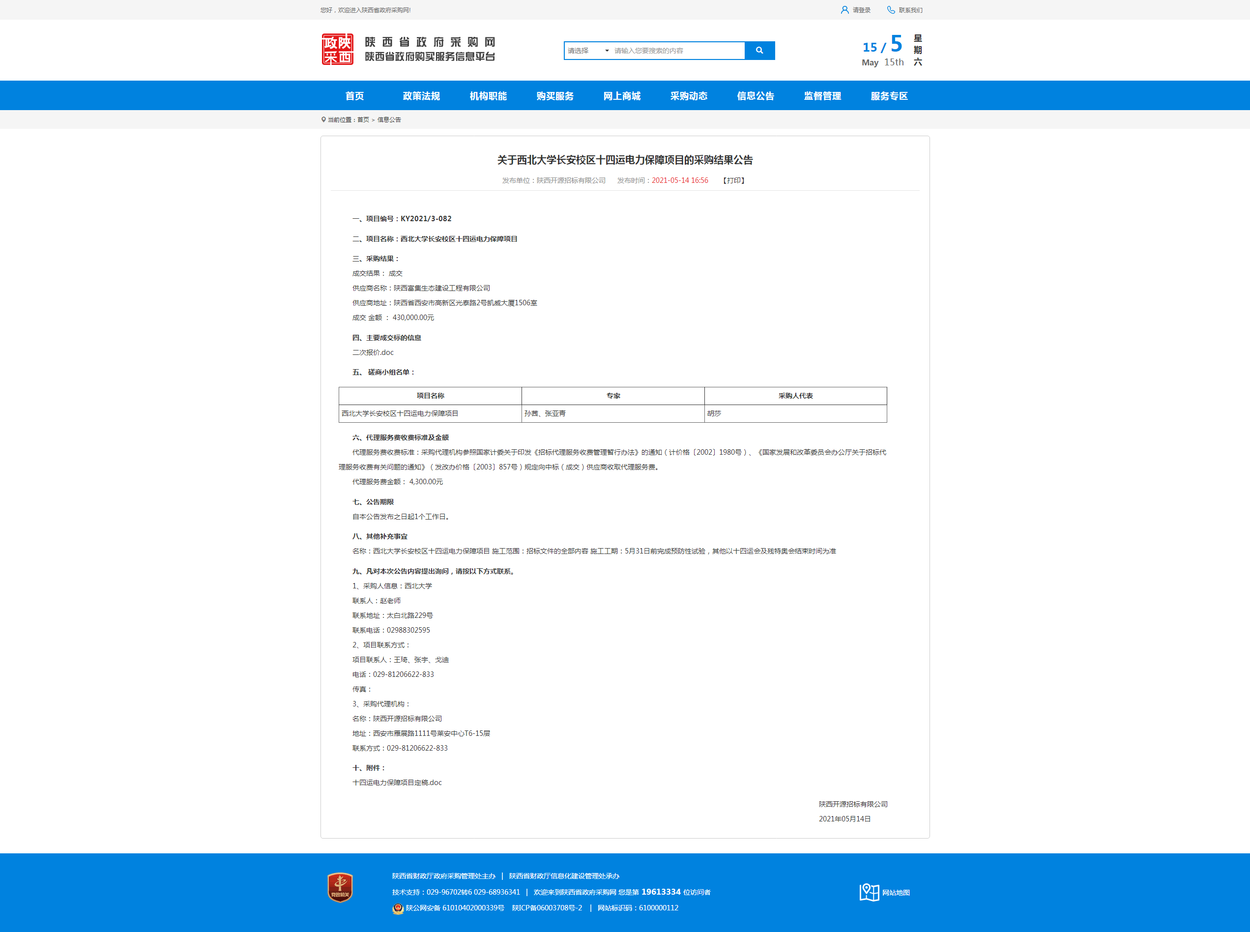 关于古天乐代言太阳集团城网址长安校区十四运电力保障项目的采购结果公告