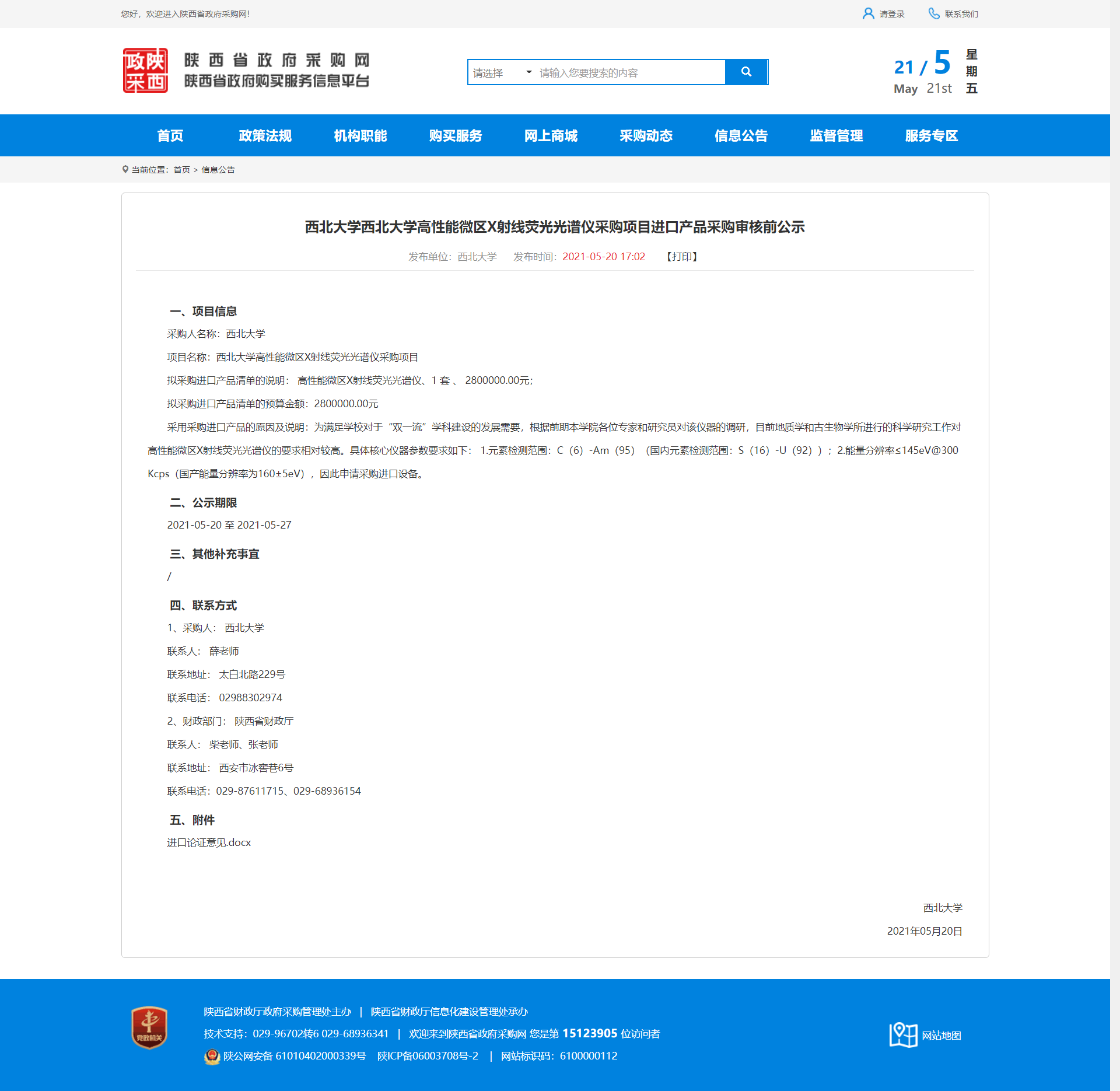 古天乐代言太阳集团城网址高性能微区X射线荧光光谱仪采购项目进口产品采购审核前公示 作者: 编辑:薛利娟 时间:2021-05-21 原公告地址:http://www.ccgp-shaanxi.gov.cn/notice/noticeDetail.do?noticeguid=8a85be33791baa0f017988f95b141335