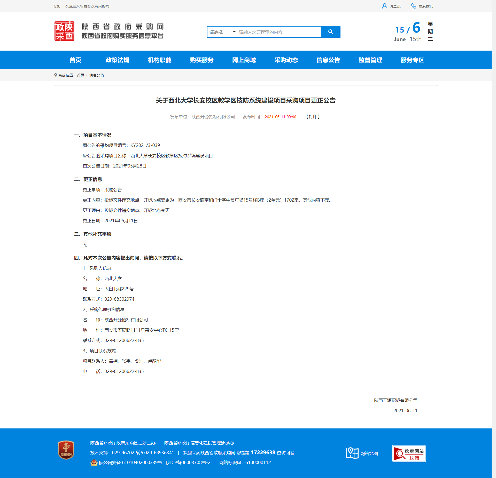 关于古天乐代言太阳集团城网址长安校区教学区技防系统建设项目采购项目更正公告 作者: 编辑:薛利娟 时间:2021-06-15 原公告地址:http://www.ccgp-shaanxi.gov.cn/notice/noticeDetail.do?noticeguid=8a85be33791baa0f0179f8ab30151d42