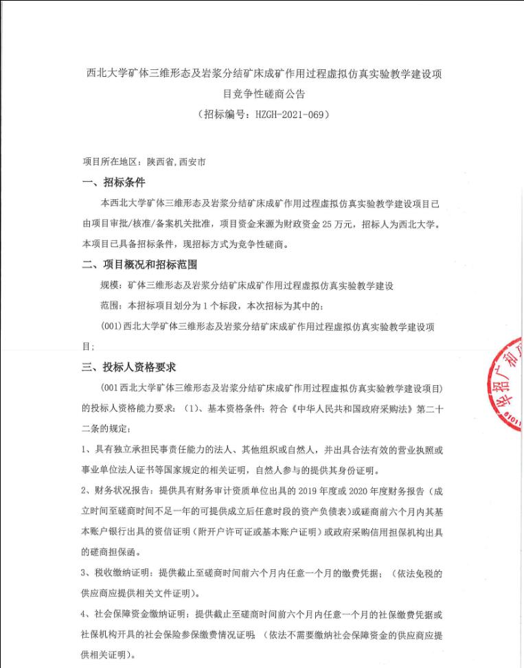 古天乐代言太阳集团城网址矿体三维形态及岩浆分结矿床成矿作用过程虚拟仿真实验教学建设项目竞争性磋商公告