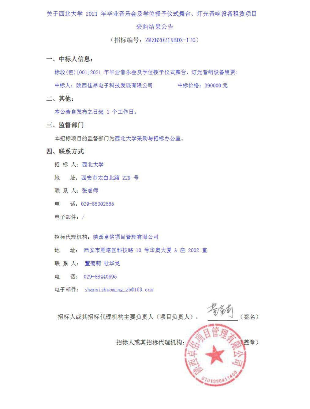 关于古天乐代言太阳集团城网址2021年毕业音乐会及学位授予仪式舞台、灯光音响设备租赁项目采购结果公告
