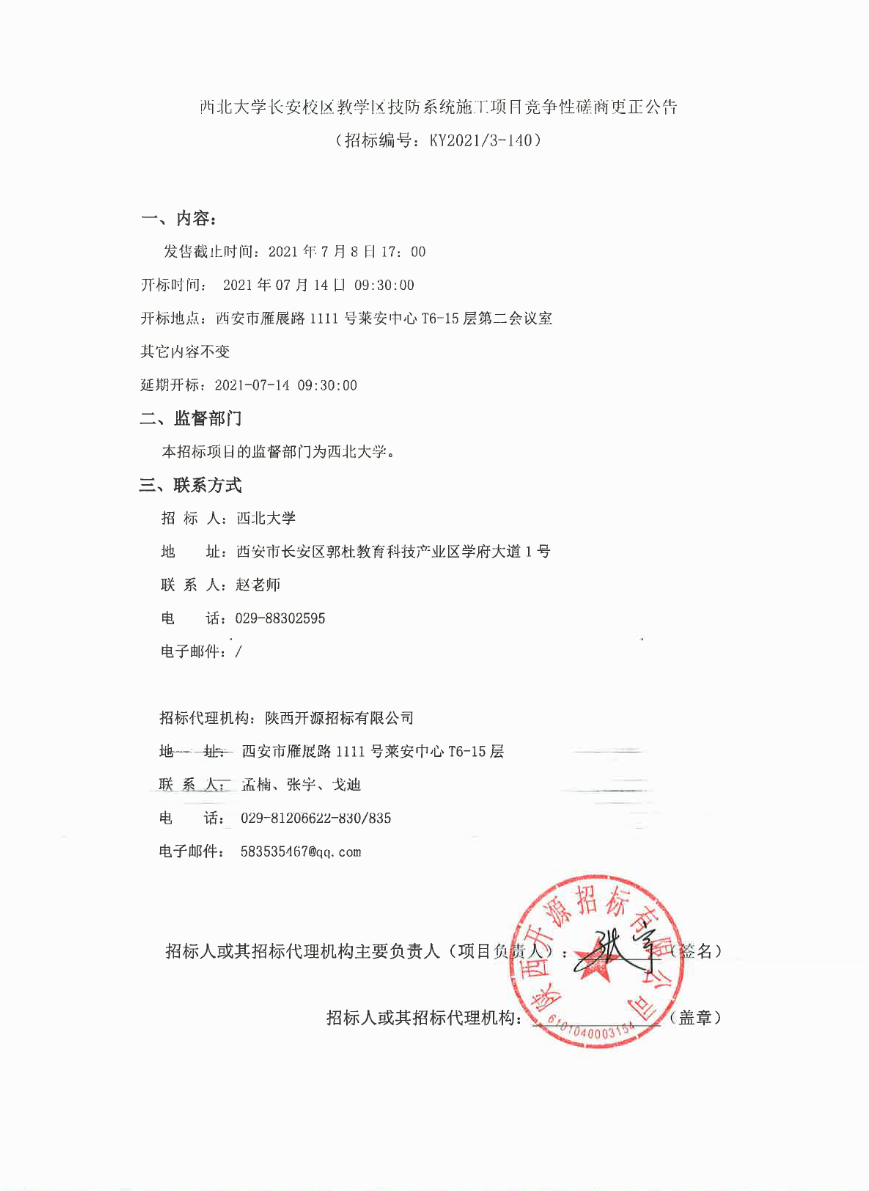 古天乐代言太阳集团城网址长安校区教学区技防系统施工项目竞争性磋商更正公告