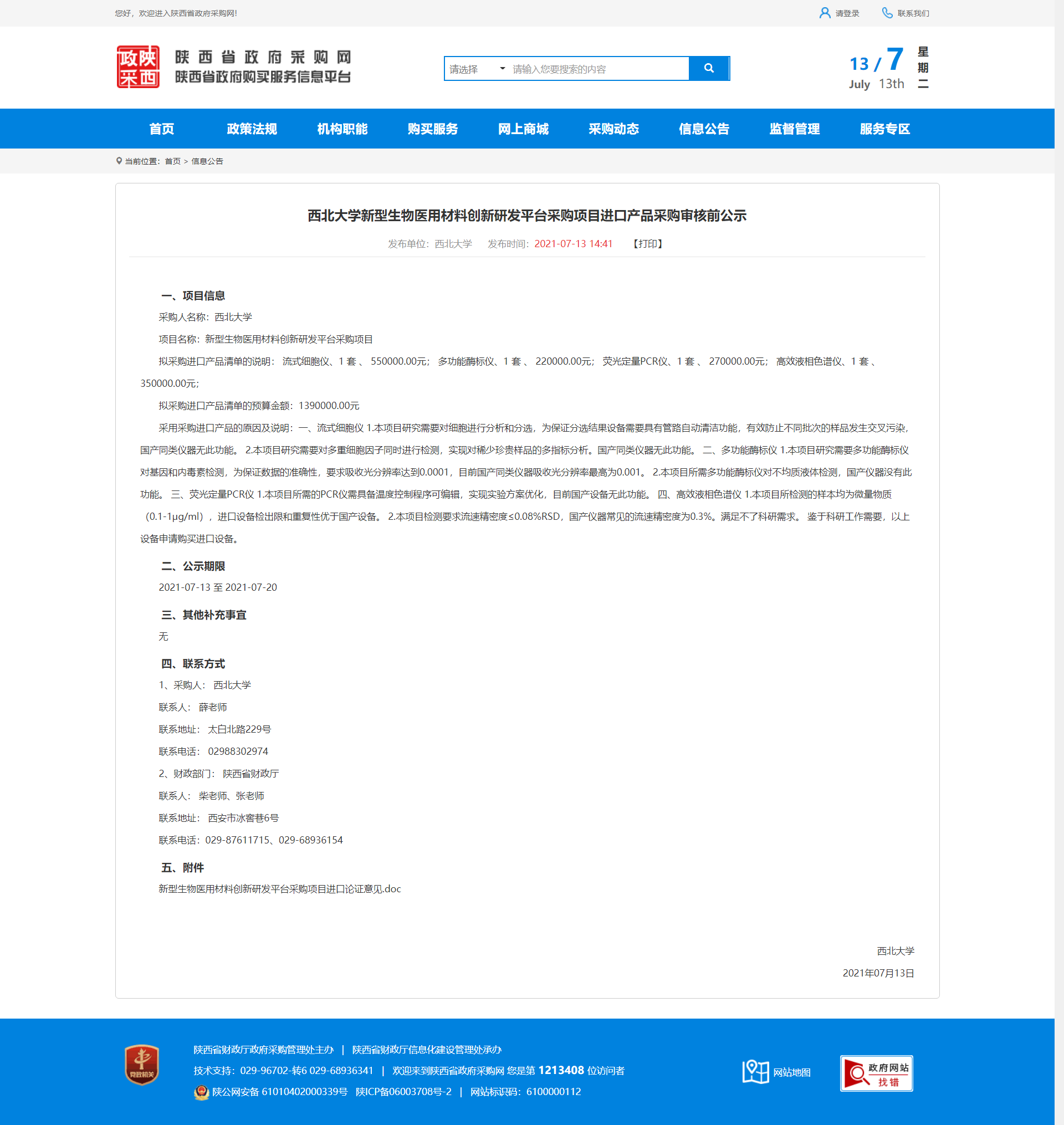 古天乐代言太阳集团城网址新型生物医用材料创新研发平台采购项目进口产品采购审核前公示 作者: 编辑:采购与招标办公室 时间:2021-07-13 原公示地址:http://www.ccgp-shaanxi.gov.cn/notice/noticeDetail.do?noticeguid=8a85be317a79693c017a9e7fb1b57286