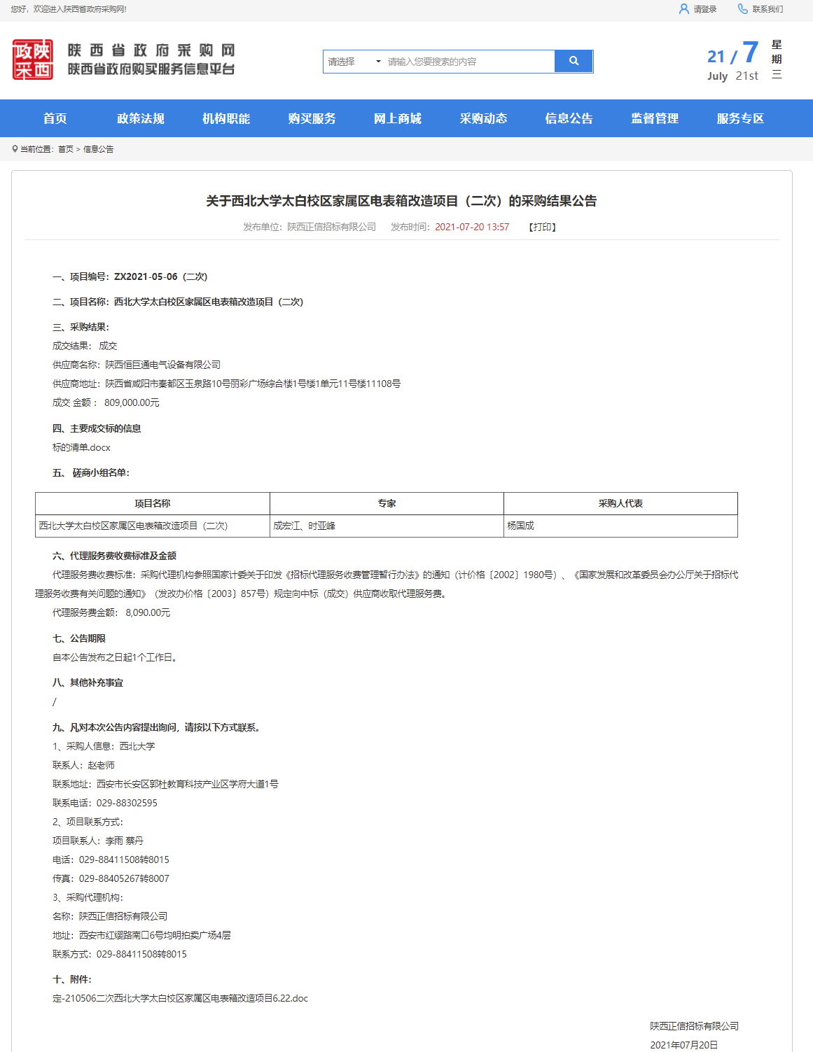 关于古天乐代言太阳集团城网址太白校区家属区电表箱改造项目(二次)的采购结果公告