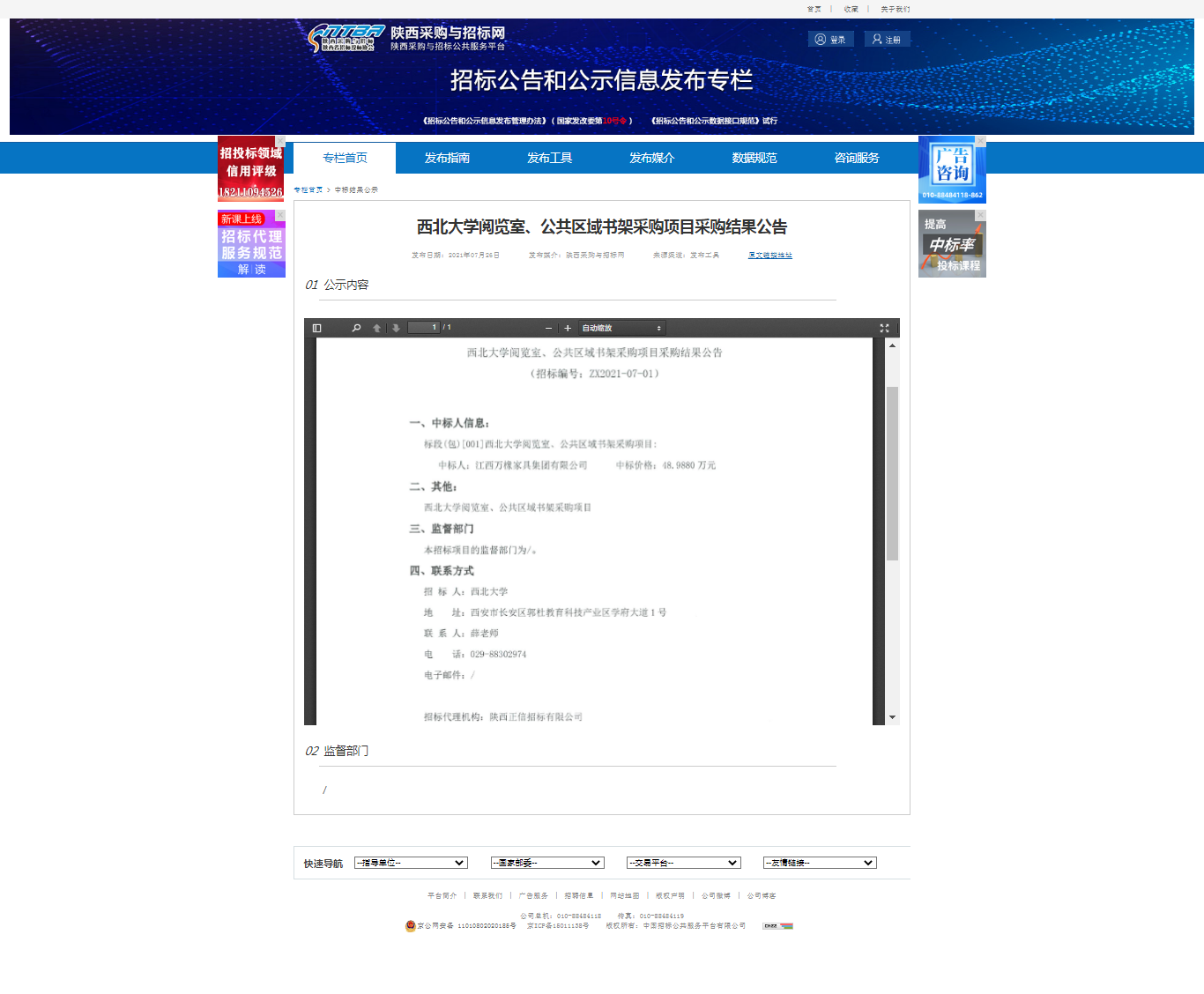 古天乐代言太阳集团城网址阅览室、公共区域书架采购项目采购结果公告 作者: 编辑:采购与招标办公室 时间:2021-07-26 原公告地址:http://bulletin.sntba.com/resultBulletin/2021-07-26/323301.html