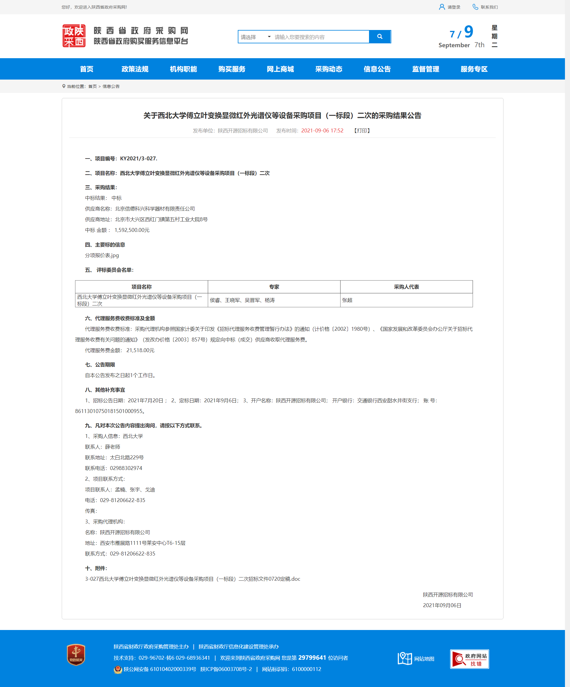 关于古天乐代言太阳集团城网址傅立叶变换显微红外光谱仪等设备采购项目(一标段)二次的采购结果公告 作者: 编辑:采购与招标办公室 时间:2021-09-07 原公告地址:http://www.ccgp-shaanxi.gov.cn/notice/noticeDetail.do?noticeguid=8a85be347b04610d017bba8364b14d06