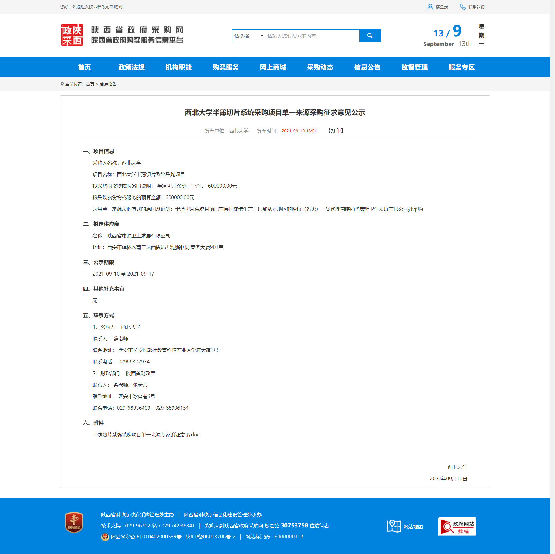 古天乐代言太阳集团城网址半薄切片系统采购项目单一来源采购征求意见公示 作者: 编辑:采购与招标办公室 时间:2021-09-13 原公告地址:http://www.ccgp-shaanxi.gov.cn/notice/noticeDetail.do?noticeguid=8a85be347bc00296017bcf1dba3d1059