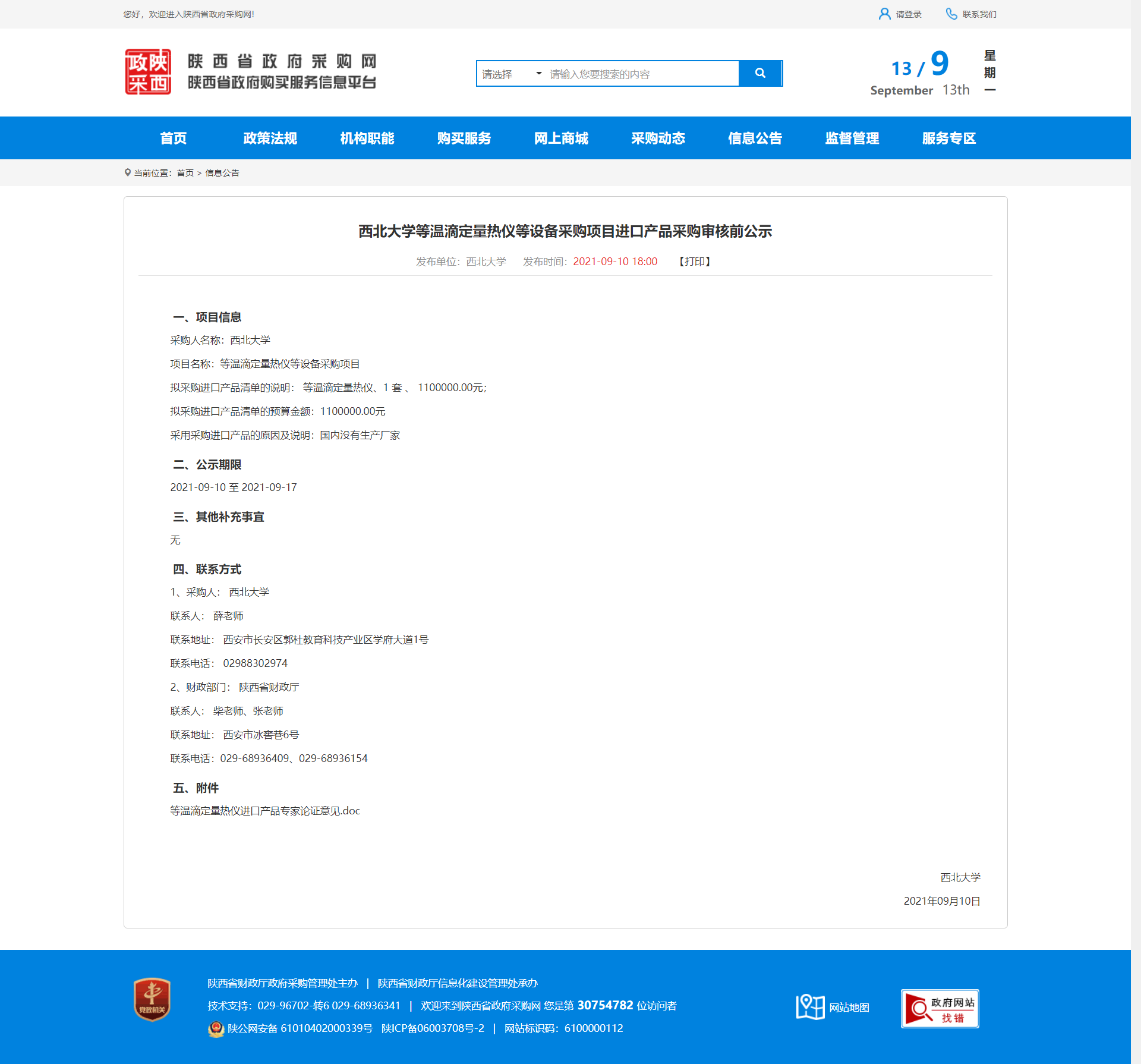 古天乐代言太阳集团城网址等温滴定量热仪等设备采购项目进口产品采购审核前公示 作者: 编辑:采购与招标办公室 时间:2021-09-13 原公告地址:http://www.ccgp-shaanxi.gov.cn/notice/noticeDetail.do?noticeguid=8a85be347bc00296017bcf17c5ca1019