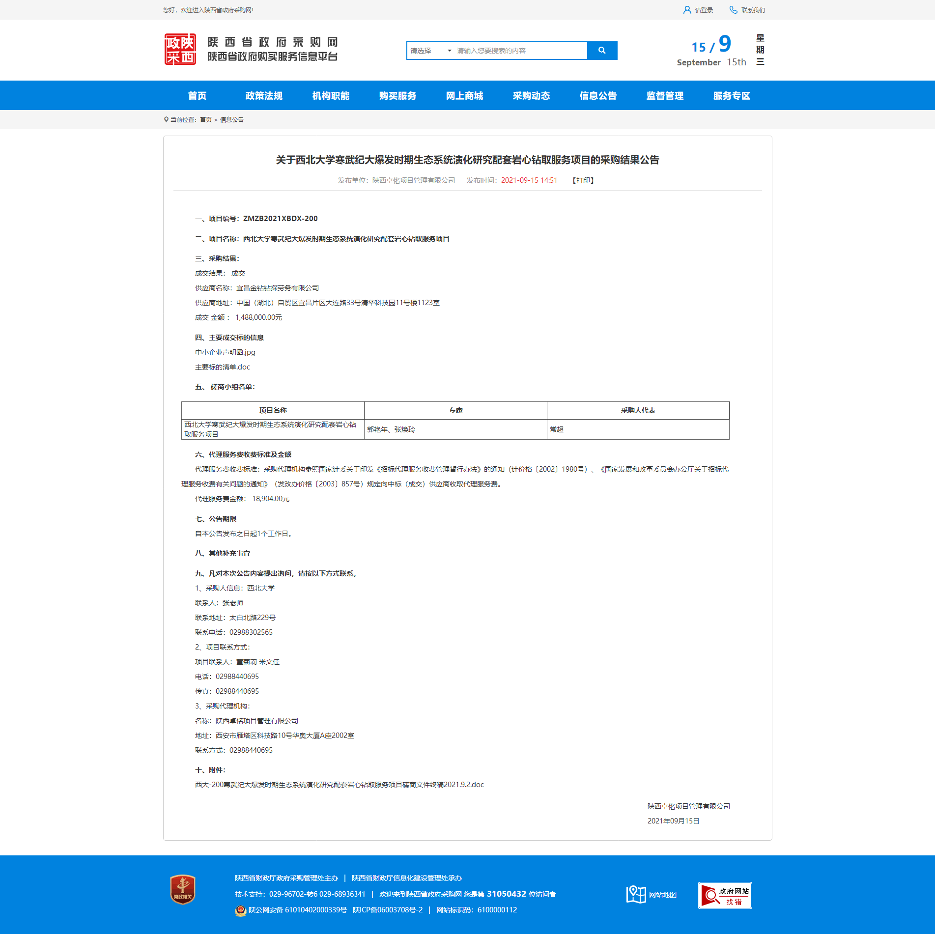 关于古天乐代言太阳集团城网址寒武纪大爆发时期生态系统演化研究配套岩心钻取服务项目的采购结果公告