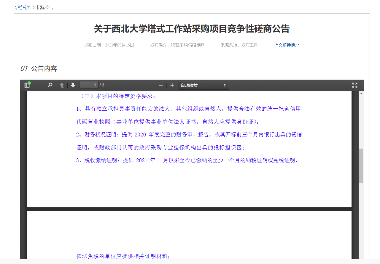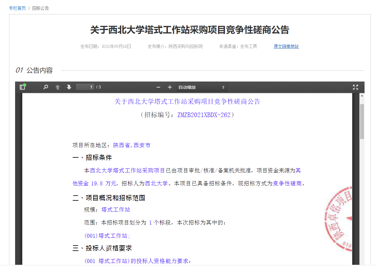 关于古天乐代言太阳集团城网址塔式工作站采购项目竞争性磋商公告 作者: 编辑:采购与招标办公室 时间:2021-09-17 原公告地址:http://bulletin.sntba.com/biddingBulletin/2021-09-16/343853.html