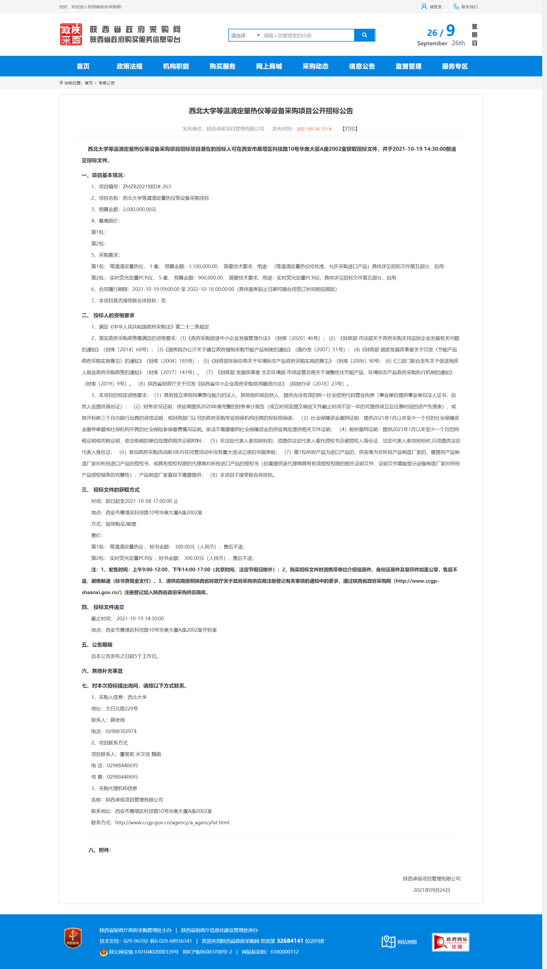 古天乐代言太阳集团城网址等温滴定量热仪等设备采购项目公开招标公告 作者: 编辑:采购与招标办公室 时间:2021-09-26 原公告地址:http://www.ccgp-shaanxi.gov.cn/notice/noticeDetail.do?noticeguid=8a85be317c20d707017c21545fc51220